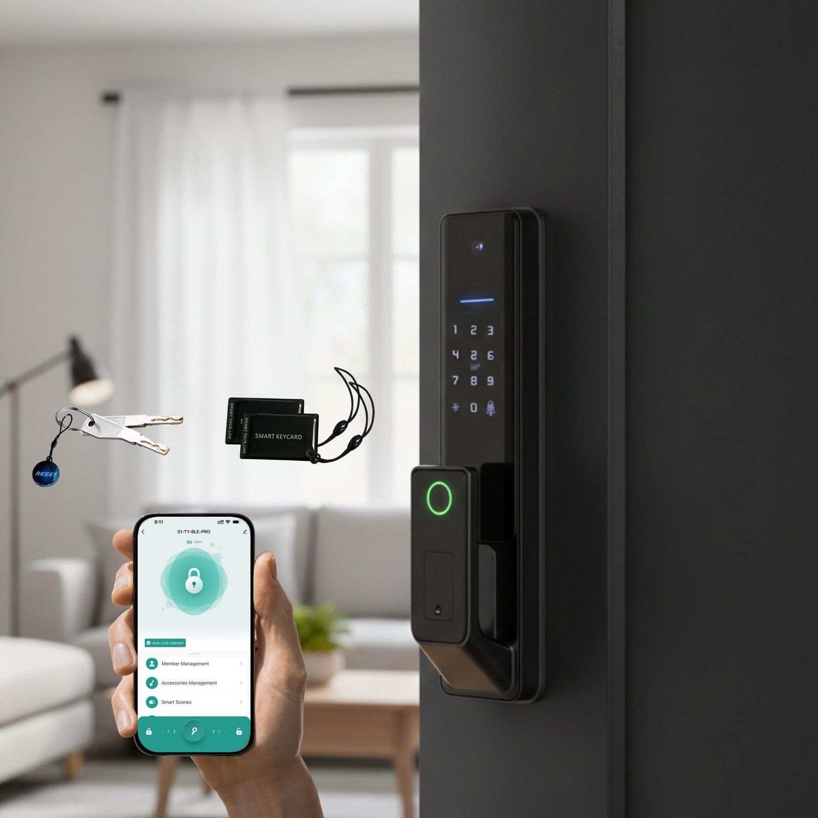 - 【Multiple Unlock Methods】– Use fingerprint, passcode, app, IC card, or mechanical key for flexible access options.